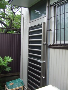 そこで、今回は、トステム製のベルエアを取り付けました。ドアを閉めたまま、ガラスが上下し、網戸の状態になるので、蚊や虫が入らず、風通しも良好です。また、ドア自体がガラスが主なので、明るくなります。