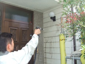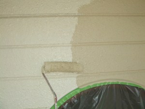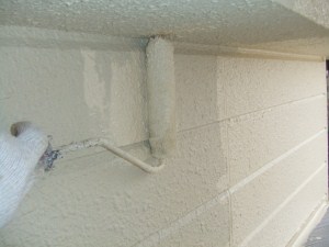 T様邸では既存の壁色に近い塗料を塗ったので全体の写真では違いが分かりずらいですね。 |