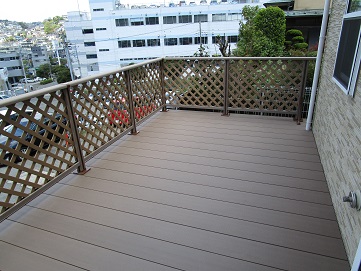 そのあと、人工デッキのリクシル製樹ら楽を取付けました。